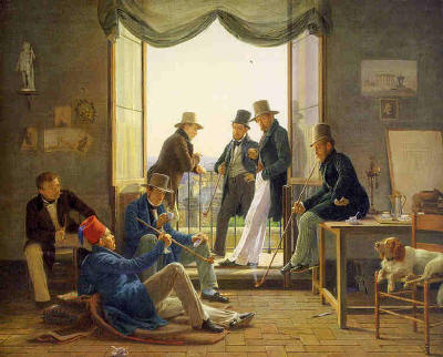 Da Kunstforeningen i København i 1837 bestilte et billede fra Rom med selvvalgt motiv, udførte Constantin Hansen maleriet Et Selskab af danske Kunstnere i Rom. Som skildring af et ukonventionelt samvær mellem ligesindede, der diskuterer deres kald, afspejler billedet kunstnernes nye selvbevidsthed i det kunstdyrkende borgerlige samfund. Ud over dette billede udførte Constantin Hansen både folkelivsscener og studier af Roms antikke arkitektur, f.eks. Titusbuen i Rom, der er helt i Eckersbergs ånd, men afslører Constantin Hansen som en større kolorist.